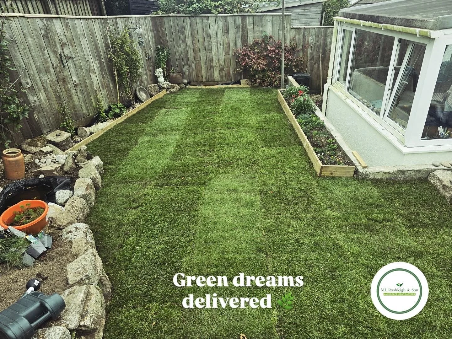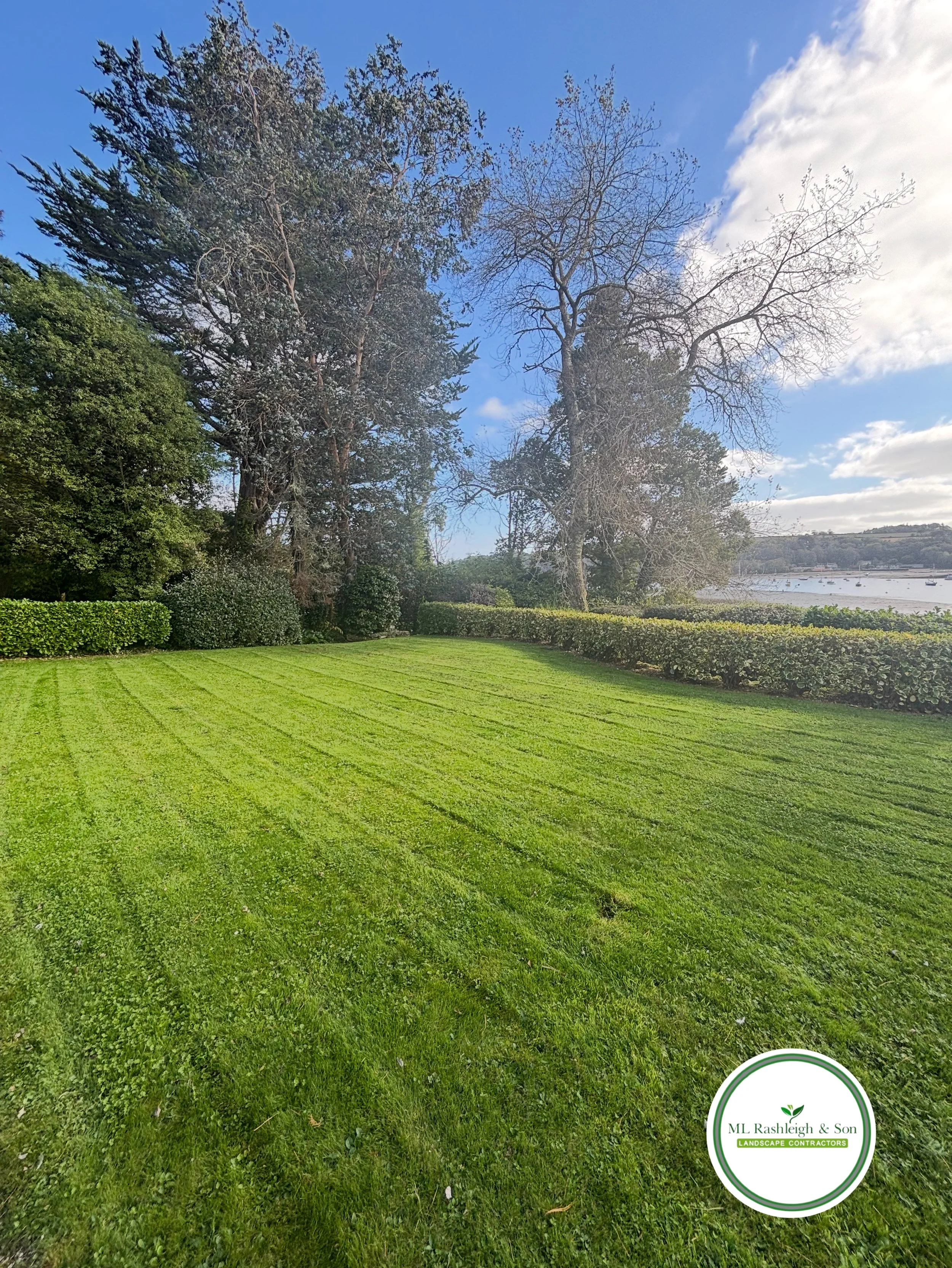 A sea of green! Rashleigh & Son transformed this space with their expert lawn installation. Check out those lines!